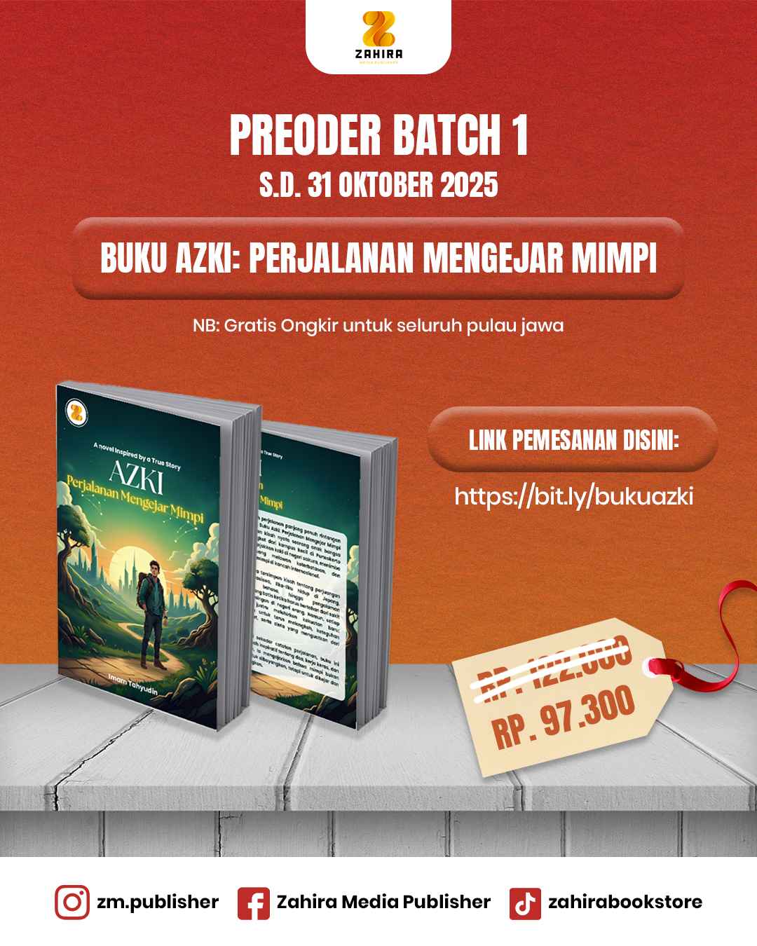 Mulai sekarang hingga 31 Oktober 2025, kamu bisa mendapatkan AZKI: Perjalanan Mengejar Mimpi melalui program Preorder Batch 1 dengan harga spesial dan bonus menarik.