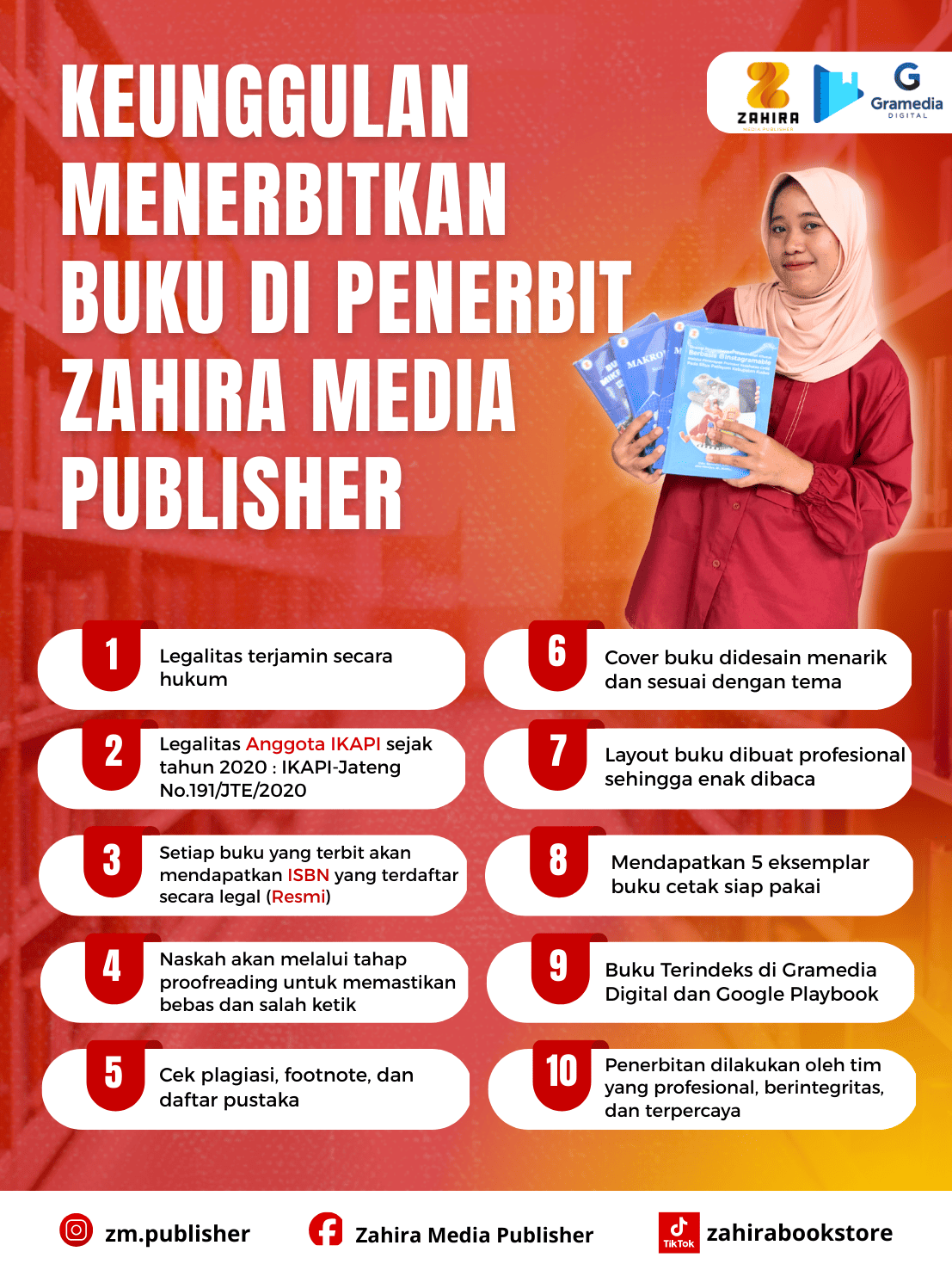 Menerbitkan buku bukan hanya soal menyalurkan ide, tetapi juga memastikan karya tersebut diterbitkan secara profesional, legal, dan mampu menjangkau pembaca yang lebih luas. Zahira Media Publisher hadir sebagai mitra penerbitan terpercaya yang memberikan banyak keuntungan bagi para penulis, baik pemula maupun profesional.